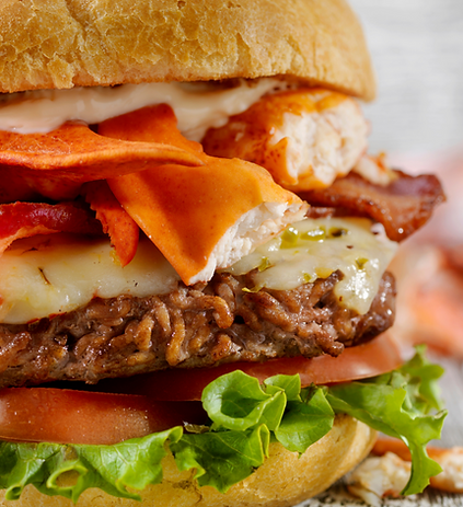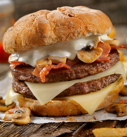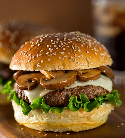 6 OZ PRIME RIB BEEF PATTY ON SESEME SEED BUN. TOPPED WITH